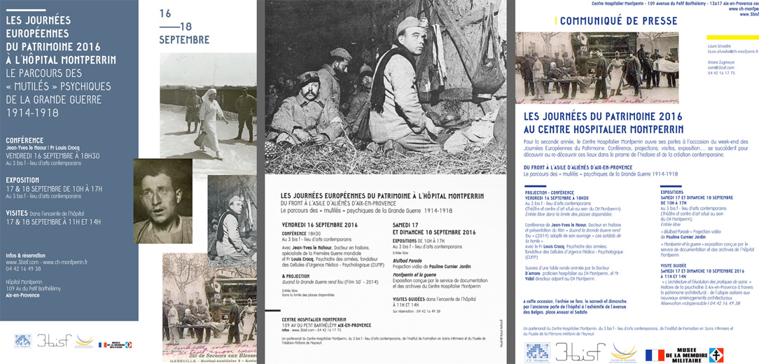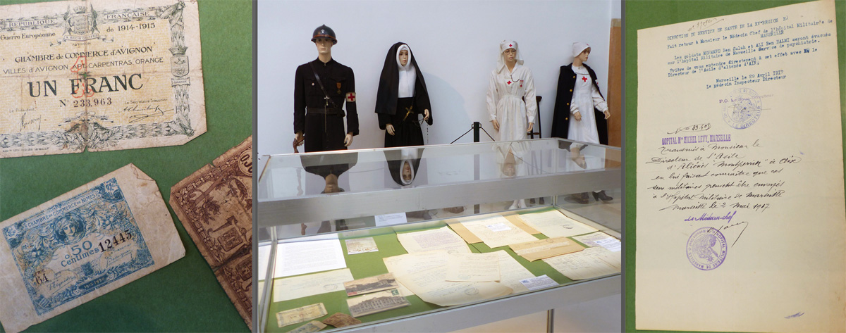 Organisée pour les journées du patrimoine 2016, cette exposition sur la guerre 14/18 est née de la collaboration du Musée de la Mémoire Militaire avec l' hôpital Montperrin d'Aix en Provence.
