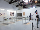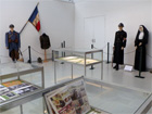5 AIX-MONTPERRIN _ Le parcours des "mutilés psychiques" de la Grande Guerre 1914-1918 ------------------------------------------ Vue générale de la salle d'exposition , vitrines, photographies, mannequins...