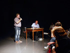 20 AIX-MONTPERRIN _ Le parcours des "mutilés psychiques" de la Grande Guerre 1914-1918 ------------------------------------------ Après la conférence, les gens restent un moment dans la salle de l'exposition.,