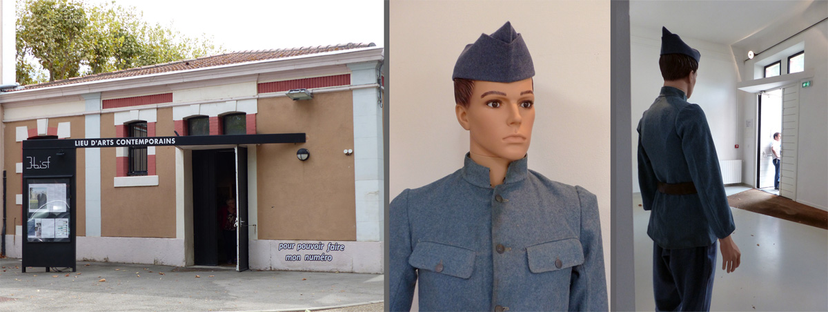 2 AIX-MONTPERRIN _ Le parcours des "mutilés psychiques" de la Grande Guerre 1914-1918 ------------------------------------------ C'est dans le 3 BIS F, le lieu d'Arts Contemporain, qu'est organisée l'exposition : un Poilu en tenue de campement accueille les visiteurs (mannequin du Musée de la Mémoire Militaire à Meyreuil).