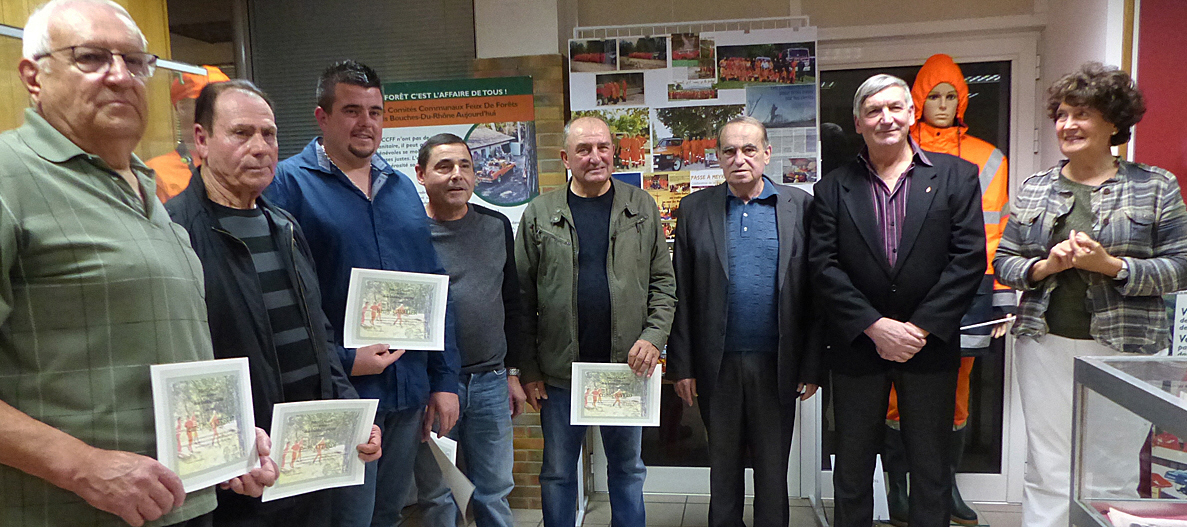 18b MEYREUIL _ C.C.F.F. ------------------------------------------ A gauche : en chemise à carreaux Jacques SOLARI et Pierre BARBAROUX anciens présidents du CCFF de MEYREUIL .