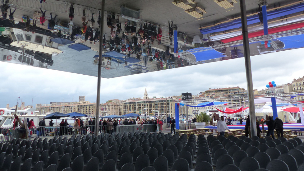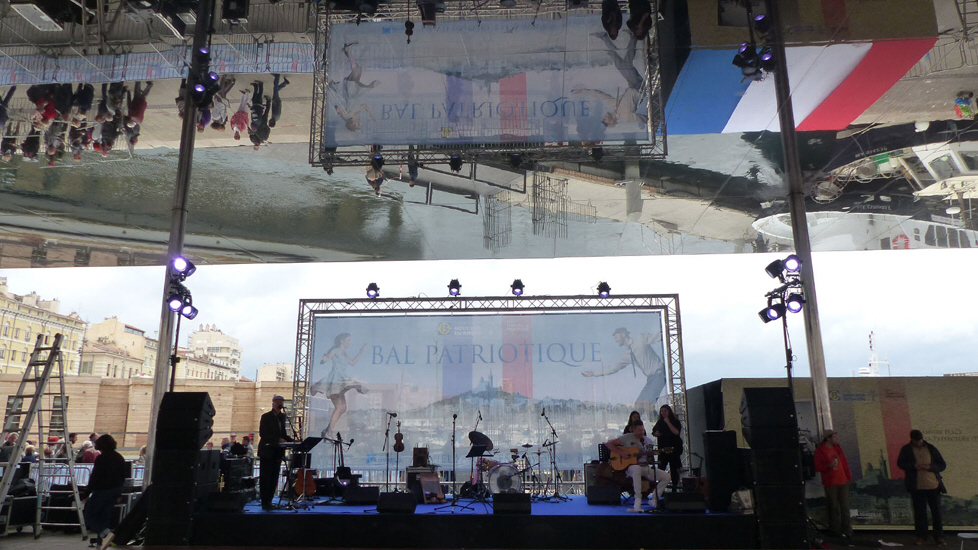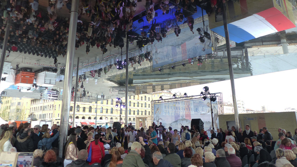 L'ombrière du Vieux-Port a donné à ce bal patriotique 2019 une dimension supplémentaire très originale ... par son effet miroir.