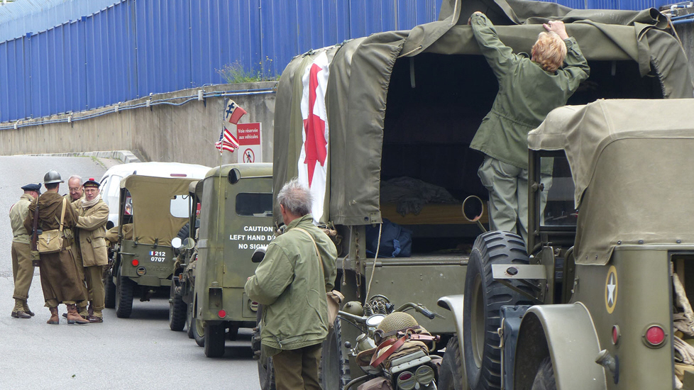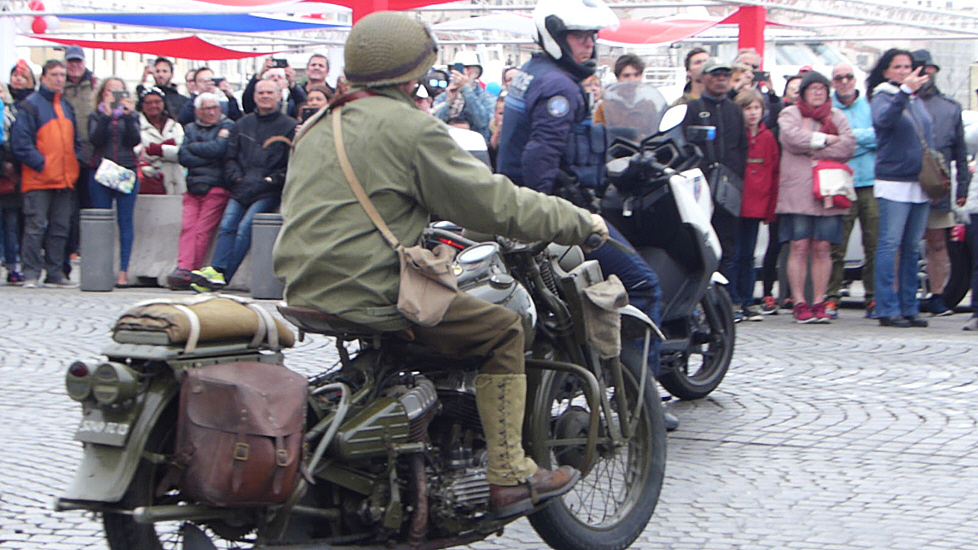 L'Hôtel du Département est le point de rassemblement des véhicules militaires d'époque et des reconstituteurs en uniforme avant le défilé historique.