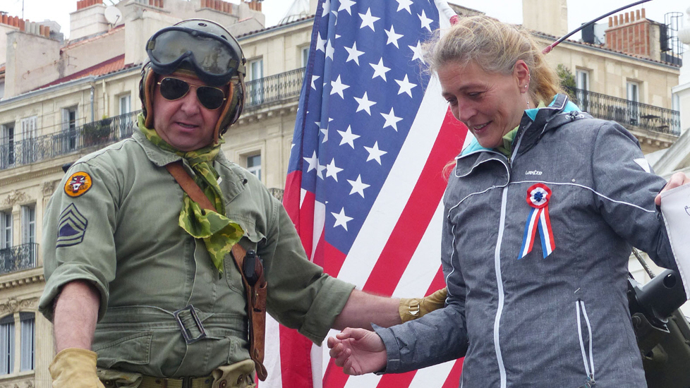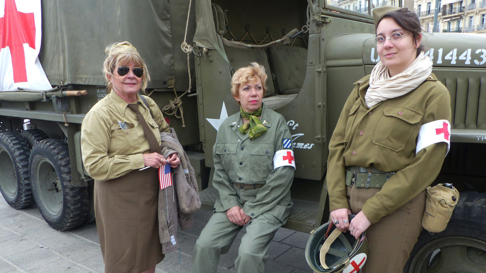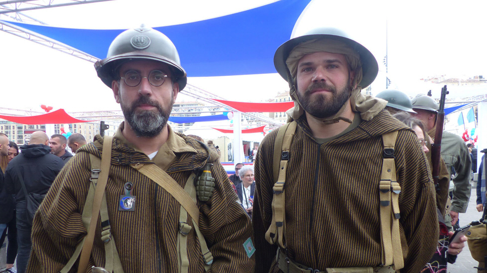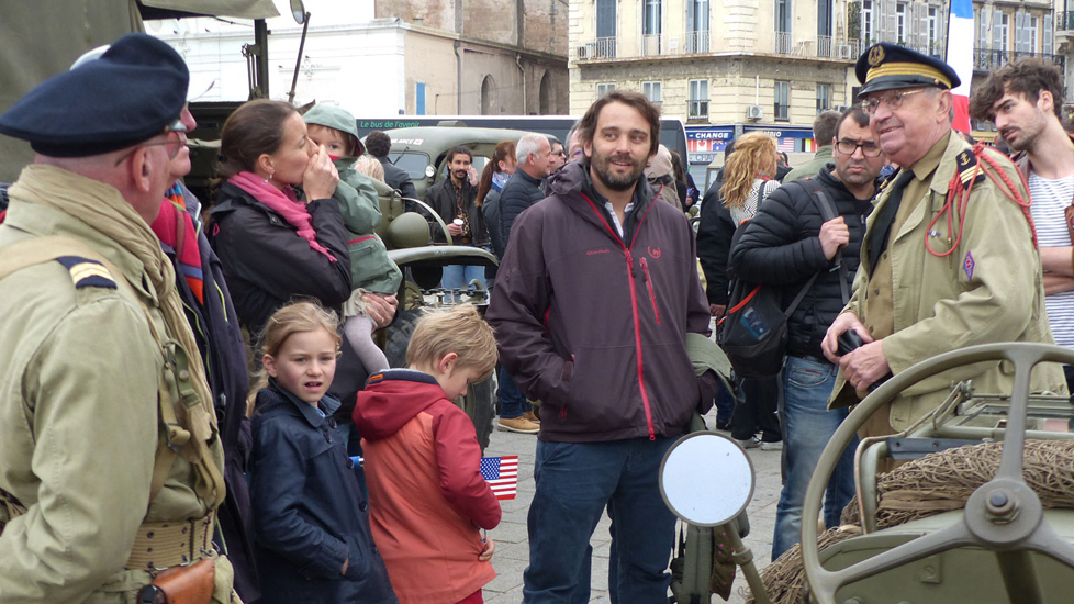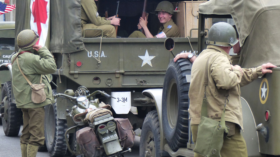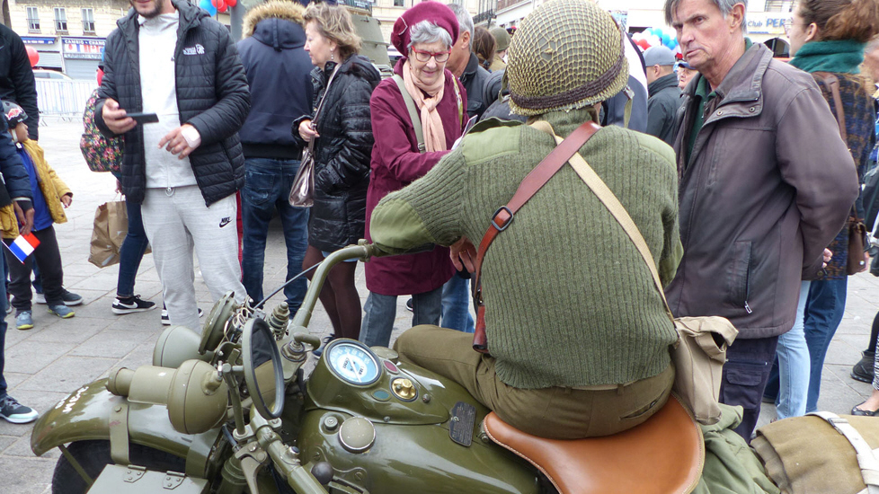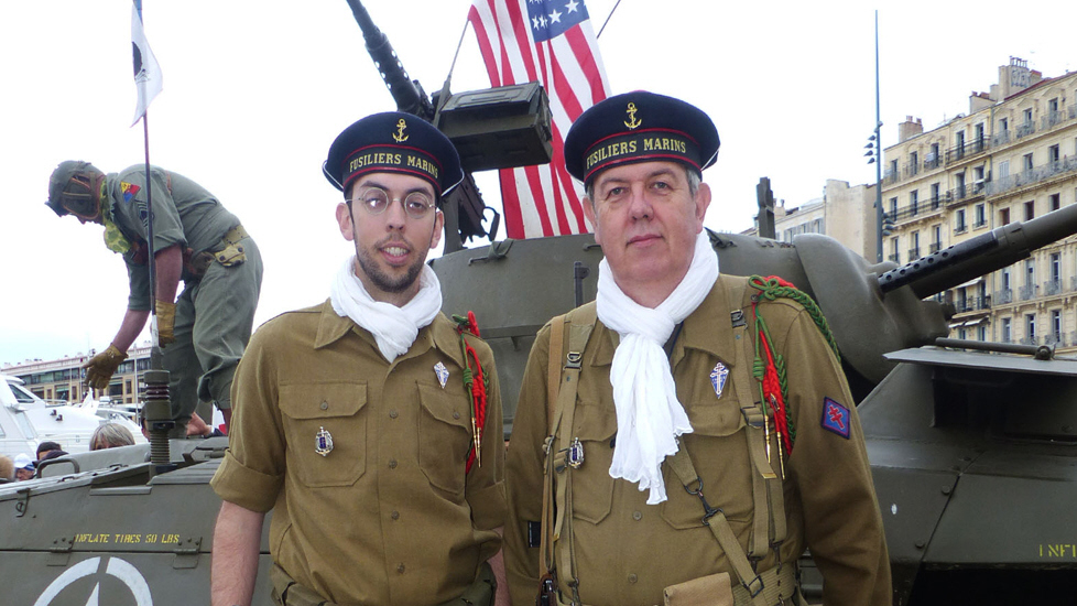 Reconstituteurs en uniformes de 1944 : regroupés en associations, ces sont des bénévoles, passionnés d'histoire, qui répondent volontiers aux questions du public dans les diverses commémorations auxquelles ils participent.