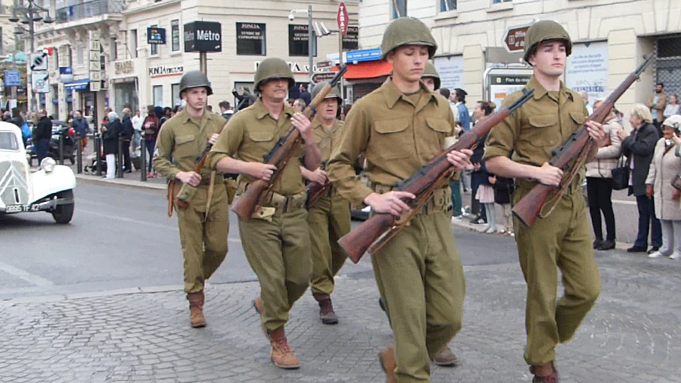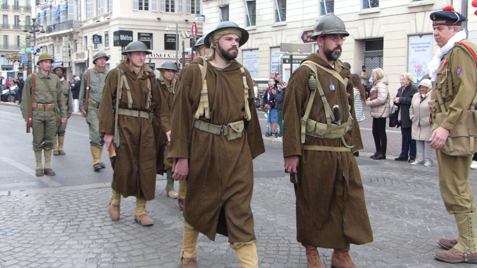Défilé historique des troupes et véhicules militaires, sur toute la longueur de la Canebière, jusqu'au Vieux- Port.