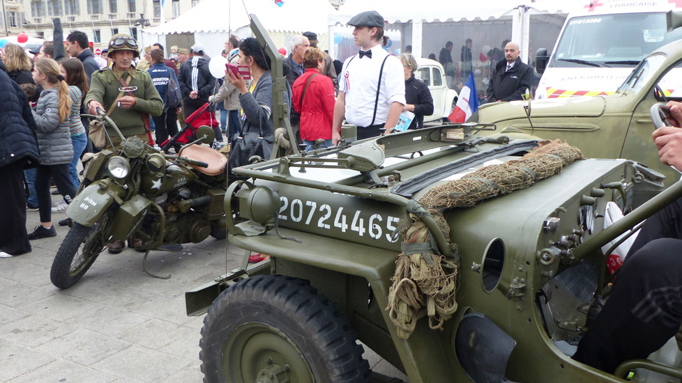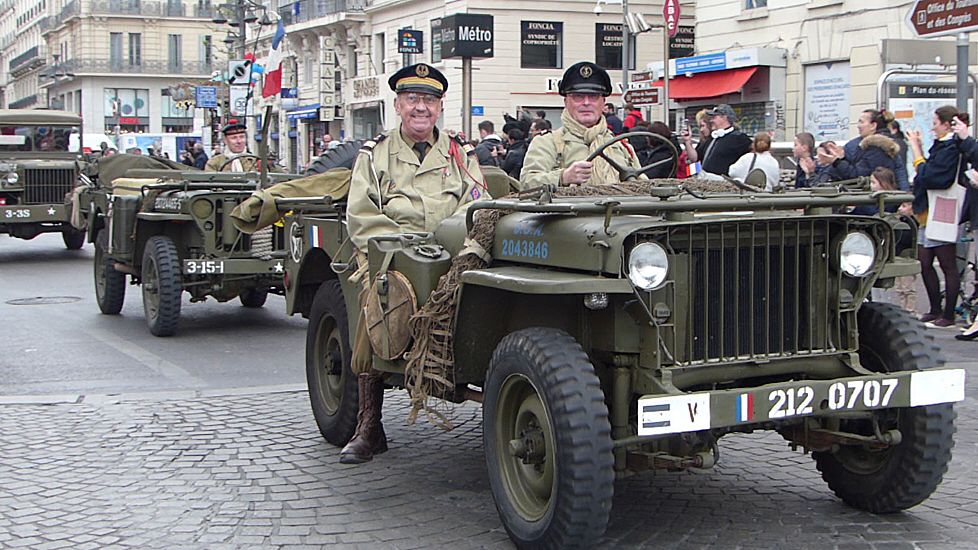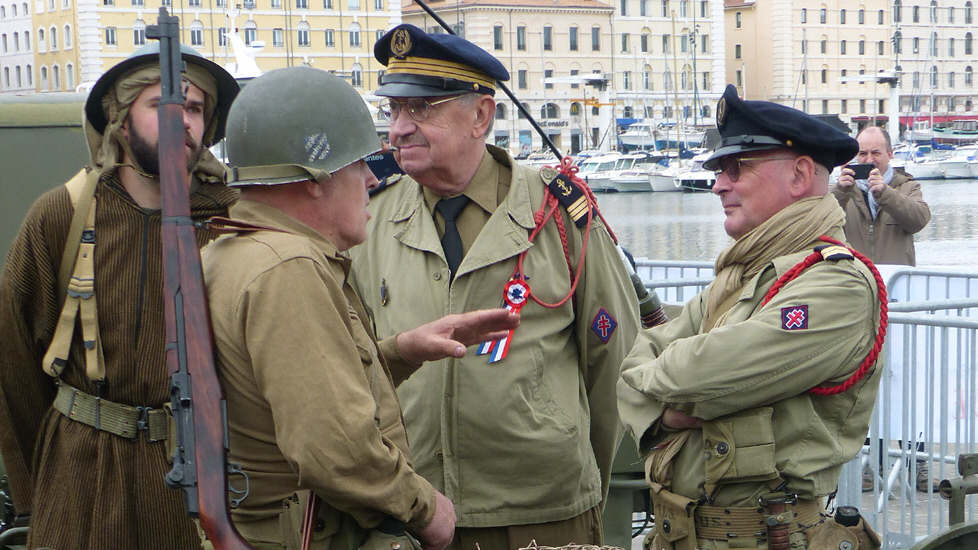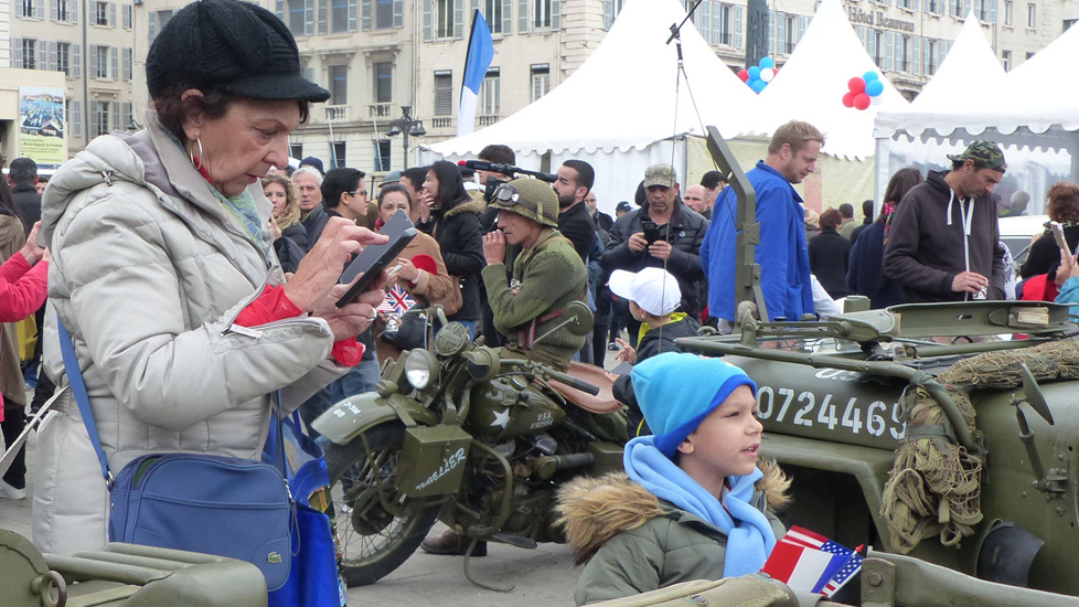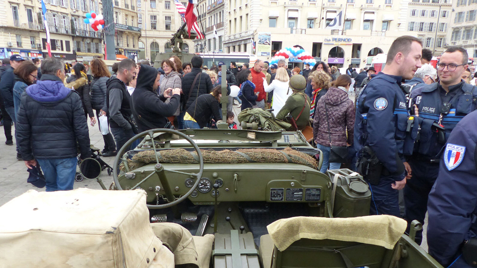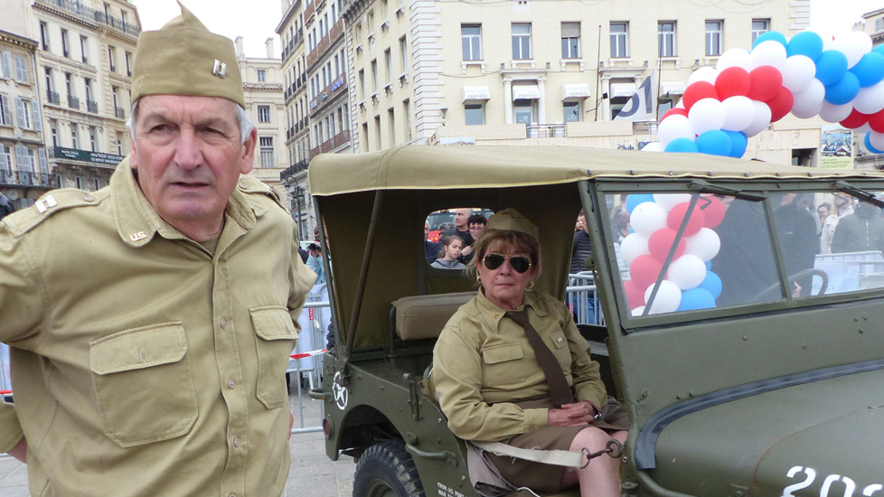 Rassemblement des véhicules d'époque et des reconstituteurs en uniforme, puis Défilé sur la Canebière, et enfin exposition sur le Vieux-Port.