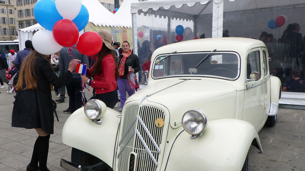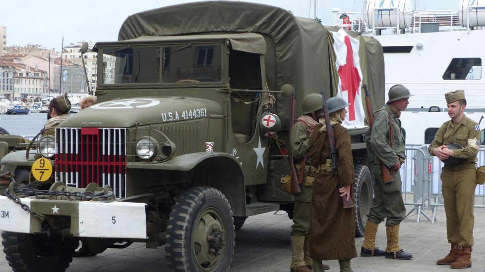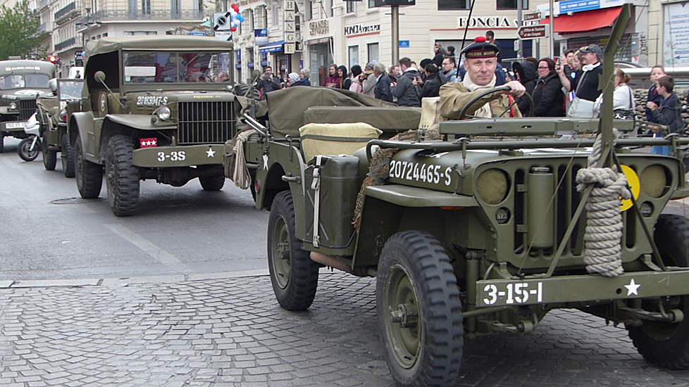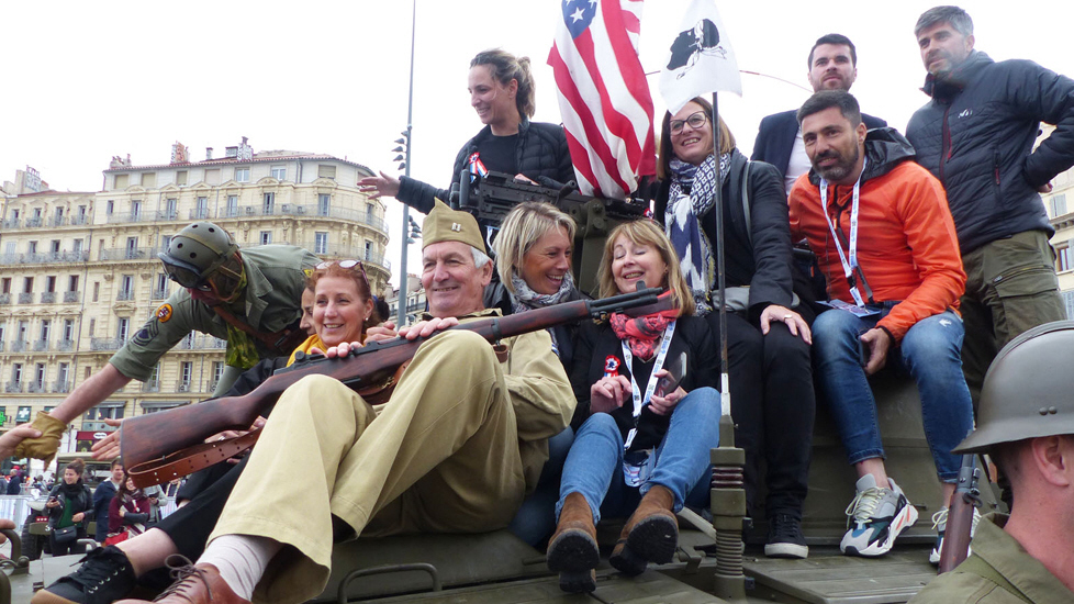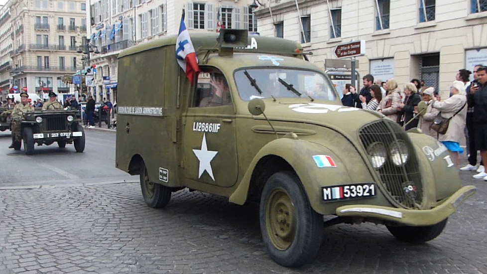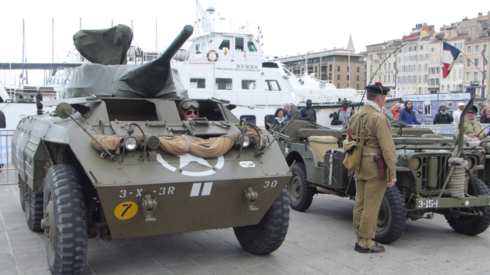 Rassemblement des véhicules d'époque et des reconstituteurs en uniforme, puis Défilé sur la Canebière, et enfin exposition sur le Vieux-Port.