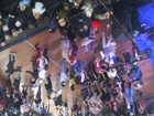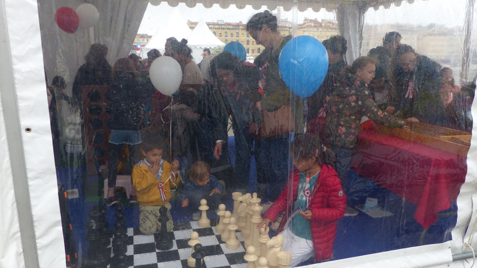 Des jeux en bois anciens, abrités par des tentes, étaiant prévus pour les jeunes visiteurs ...