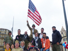 40, gâteaux et rafraîchissements offerts aux 14.000 personnes qui se sont succédées tout le long de l'après-midi, adultes et enfants arboraient de petits drapeaux tricolores Français, Américains, ou Anglais, ainsi que des ballons, l'ensemble distribué par l'organisateur.