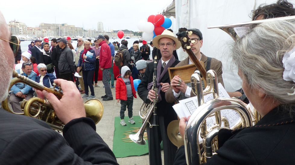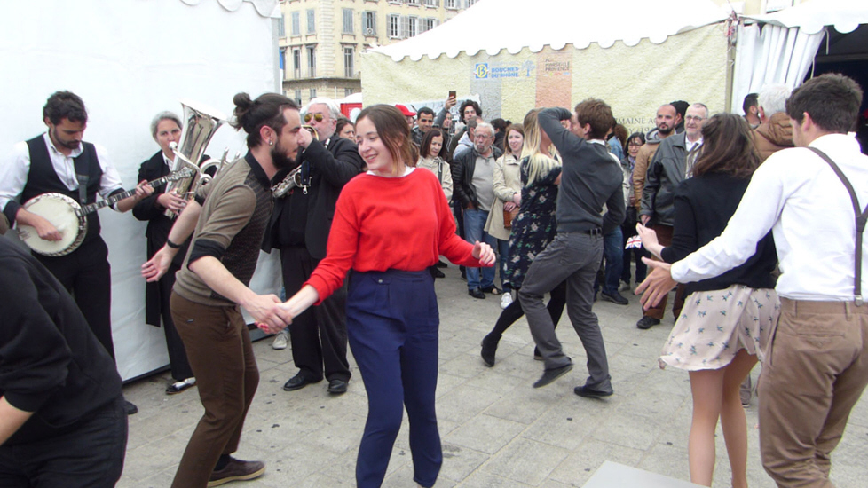 Animations musicales Jazz et Swing sous l'ombrière du Vieux- Port, avec Lindy Peppers, Dixilexik Washboard Five et DJ Swing.