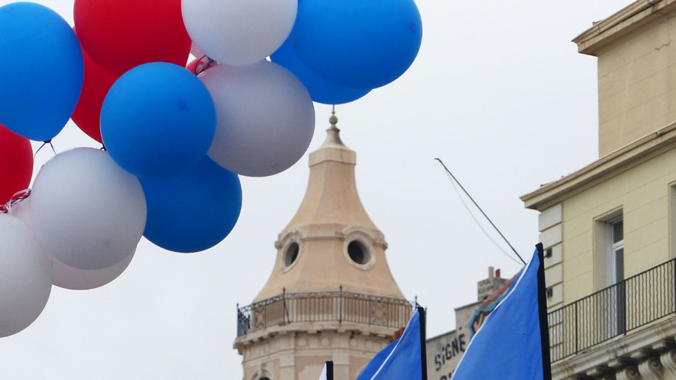 Tout autour de l'ombrière du Vieux-Port, ballons et drapeaux tricolores rappelaient la Commémoration de la Victoire de 1945.