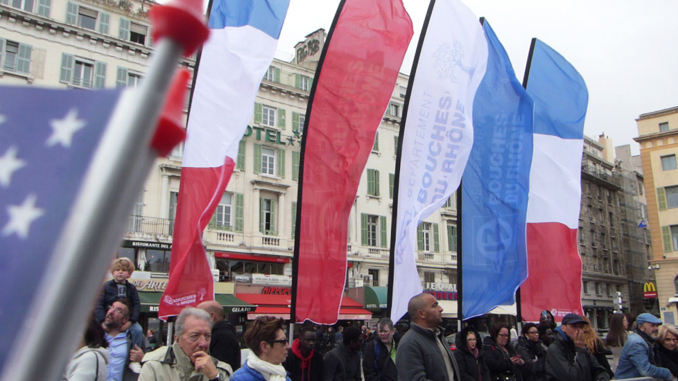 Quelques résidents, alertés par les sirènes hurlantes, se sont mis aux fenêtres, non pas en agitant des drapeaux, mais