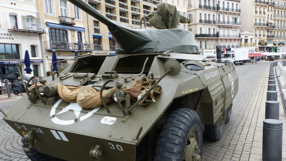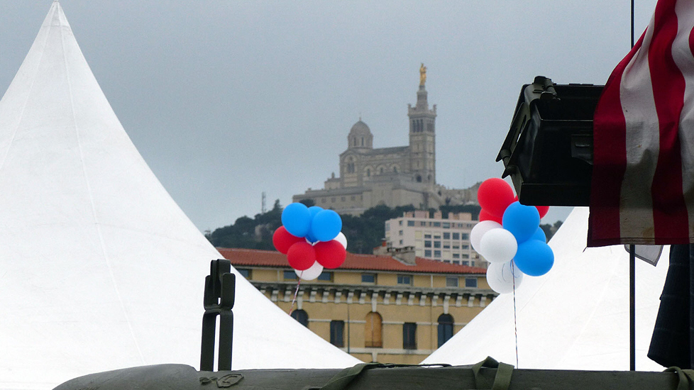 A 18H00, le public avait quitté la zone, c'était l'heure du départ des véhicules militaires, sous le regard de la Bonne Mère dont la Basilique, au sommet la colline de la Garde, fut l'objet de brefs mais âpres combats lors de la Libération de Marseille entre le 21 et le 28 août 1944.