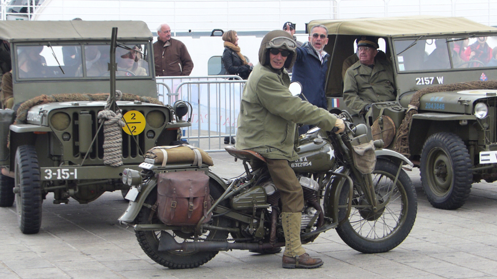 et sa Harley-Davidson WLA a été très entouré : la WLA, très similaire au modèle civil, fut fabriquée pour l'armée US à partir de 1940,